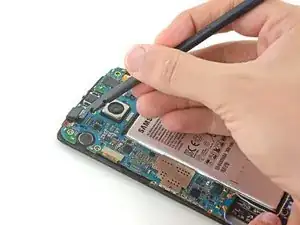 Используйте лопатку, чтобы отключить фронтальную камеру от материнской платы.