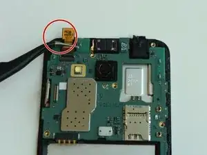 Снимите фронтальную камеру в верхнем левом углу телефона, аккуратно удалив ее пинцетом.
