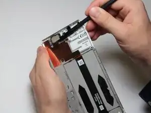 Работая снизу вверх, аккуратно подденьте материнскую плату и снимите её с телефона.