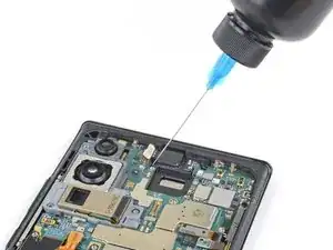 Подождите две минуты, чтобы изопропиловый спирт ослабил клей вокруг фронтальной камеры.