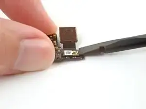 Другой рукой, плоским концом лопатки подденьте и отсоедините прижимной разъём передней камеры.