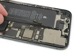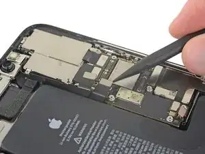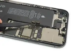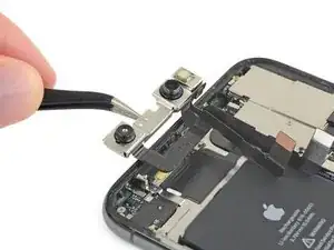 Аккуратно отодвиньте разъёмы кабеля Face ID от материнской платы, чтобы получить доступ к разъёму камеры для селфи, расположенному под ними.