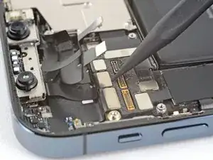 Используйте лопатку или ноготь, чтобы отсоединить кабель датчика Face ID от его разъёма на плате.