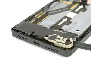 Вставьте конец инструмента для открытия iFixit между задней крышкой и средней рамкой телефона.