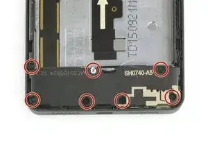 Выньте семь винтов на 4 мм типа Phillips #00, крепящих блок громкоговорителя к средней рамке телефона.