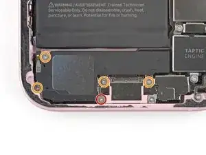 Используйте крестообразную отвёртку Phillips #000, чтобы удалить четыре винта длиной 1.6 мм, фиксирующие динамик.