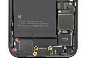 Используйте отвертку P2 «пенталоб» для удаления двух винтов длиной 7.8 мм по обе стороны от разъёма для зарядки.