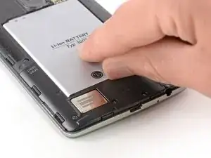 Используйте ноготь или рычаг в отмеченной выемке, чтобы поддеть батарею и вынуть её из гнезда.