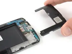Громкоговоритель в LG G3 прикреплён к нижней половине пластиковой панели над дочерней платой. Чтобы заменить громкоговоритель, необходимо также заменить панель.