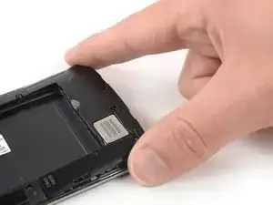 Вставьте ноготь или рычаг, такой как лопатка, в выемку в нижнем левом углу задней крышки.