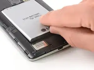 Вставьте ноготь или рычаг, такой как лопатка, в выемку в нижнем левом углу задней крышки, которую вы использовали ранее для её снятия.