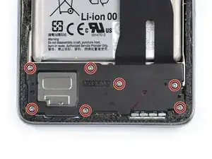 Используйте крестовую отвёртку, чтобы извлечь семь винтов длиной 3,9 мм, фиксирующих модуль громкоговорителя.