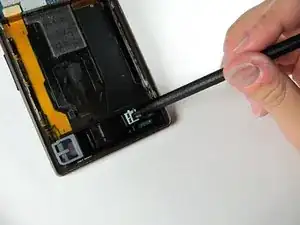 Просто поместите безопасный открывающий инструмент рядом с указанной защёлкой и слегка нажмите. Плата антенны должна выскочить.