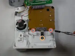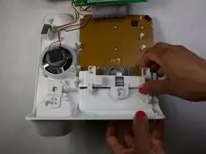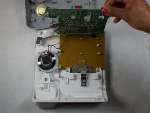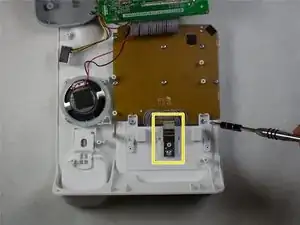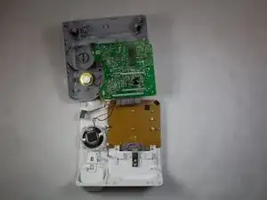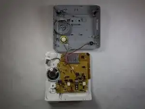 После разделения белой пластиковой крышки и серой пластиковой нижней части внутренности устройства станут доступны.
