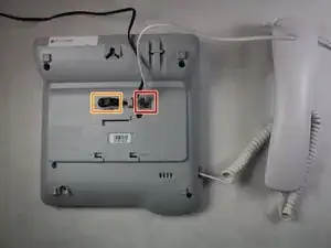 Снимите телефонный кабель с задней крышки устройства.