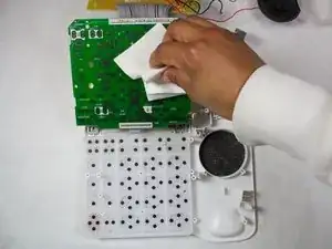 Используя чистое полотенце или тряпку, отведите плату кнопочной панели от клавиш, расположенных ниже.