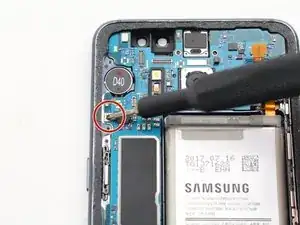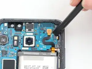 Отключите гибкий кабель кнопок увеличения и уменьшения громкости, а также кнопки Bixby с помощью плоского конца лопатки.