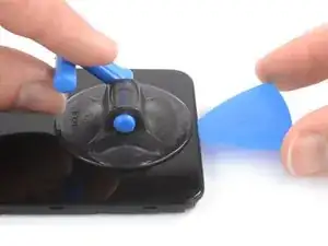 Поднимите заднее стекло с помощью присоски, чтобы создать небольшой зазор между экраном и рамой.