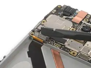 Отогните межплатный шлейф в сторону, чтобы получить доступ к аккумулятору.