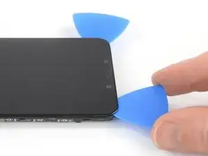 Проведите монтажным инструментом вдоль левого края телефона, чтобы освободить оставшиеся пластиковые защёлки.