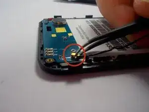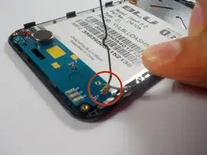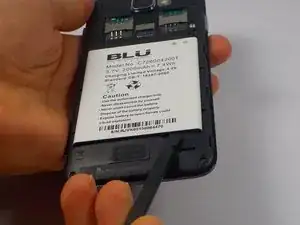 Сняв заднюю панель, вы увидите большой белый прямоугольник. Это аккумулятор. Подденьте лопатку под выемку в правом нижнем углу аккумулятора и потяните его вверх.
