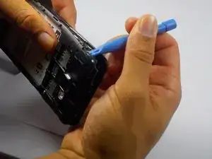 Вставьте пластиковый инструмент для открывания в угол пластиковой панели и осторожно подденьте её, отрывая от остальной части телефона.