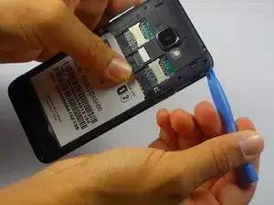 Вставьте лопатку в небольшой паз и слегка поверните её. Это вызовет приподнимание угла задней панели.