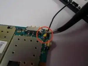 Чтобы отсоединить золотые контакты от материнской платы, возьмите пинцет и аккуратно, но уверенно потяните вверх. Повторите для обоих концов — провод отсоединится.