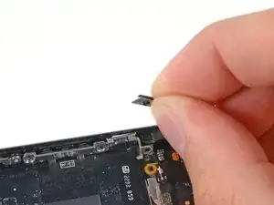 Используйте наконечник лопатки, чтобы поддеть кронштейн переключателя беззвучного режима с боковой стороны задней крышки.
