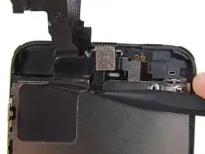 Если вы заменяете датчик приближения, убедитесь, что держатель остаётся приклеенным к задней части дисплея. Если он оторвётся вместе со старым датчиком, снимите его с старого датчика и используйте немного клея, чтобы прикрепить его обратно к задней части дисплея.