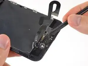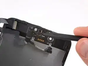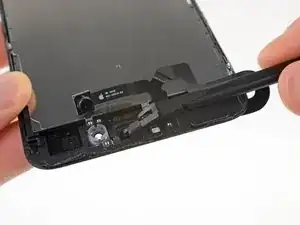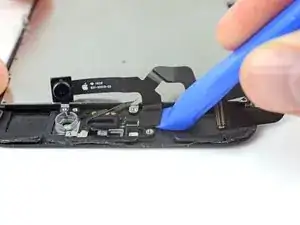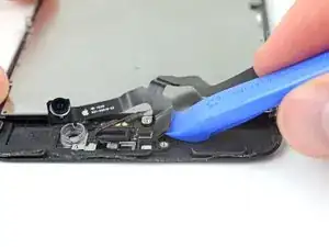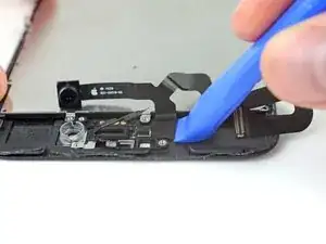 Вставьте острый край инструмента для вскрытия iFixit под гибкий кабель блока камеры с противоположной стороны от фронтальной камеры.
