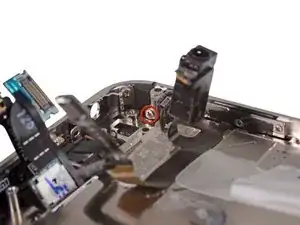 Удалите винт Phillips 2.6 мм, крепящий плату рядом с кнопкой питания.