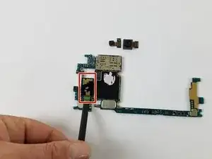 Возьмитесь за материнскую плату за верхний конец (конец с камерами) и аккуратно приподнимите её и выньте из телефона.