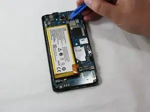 Используйте пластиковый инструмент, чтобы поднять разъем с защелкой и отключить кабель батареи.