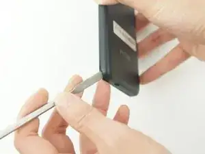 Подденьте заднюю крышку металлической лопаткой или ногтем в выемке в нижнем левом углу телефона.