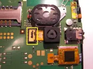 Осторожно поднимите нижнюю прямоугольную часть модуля камеры вверх и от устройства — соединение освободится.