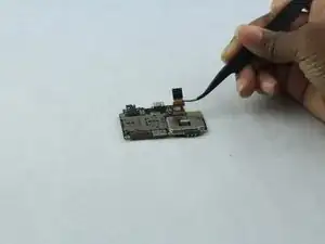 С помощью пинцета аккуратно отсоедините камеру от золотого кабеля.