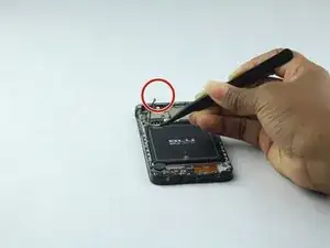 С помощью пинцета снимите верхнюю чёрную окантовку камеры.