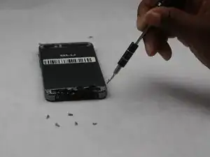 Отверткой Phillips #000 удалите все 10 винтов на задней панели телефона.