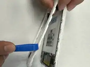 Используйте инструмент для открытия iFixit, чтобы обойти вокруг задней крышки телефона, ослабляя ее и позволяя легко снять. Она должна легко отделяться от корпуса. Обязательно обойдите вокруг всего телефона.