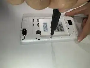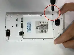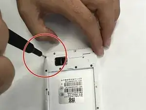 Используйте Джимми, чтобы открыть заднюю крышку телефона. Вставьте его под край задней крышки телефона и аккуратно ослабьте край. Корпус должен немного приподняться.