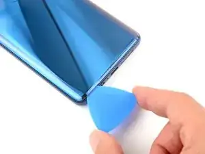 Если задняя панель всё ещё прилипла к средней рамке, проведите лопатку по краям телефона, пока панель полностью не отделится.