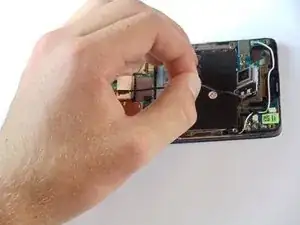 По мере ее освобождения, вытяните среднюю рамку от телефона.