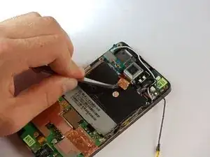 Поднимите край и вытяните аккумулятор из телефона.