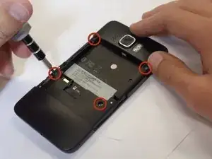 Удалите четыре черные винта T5 размером 3,5 мм с задней части телефона.