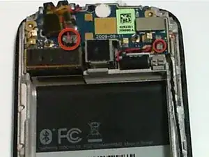 Снимите винт Phillips 3 мм, расположенный в верхнем правом углу телефона.