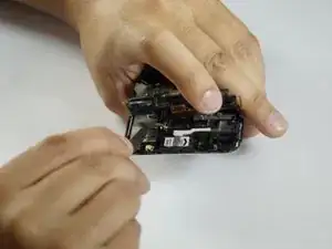 Удалите камеру, отсоединив коробку от рамки (вам нужно будет повернуть металлическую деталь на коробке для её извлечения).