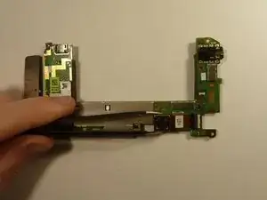 Положите телефон на бок, чтобы аккуратно приподнять материнскую плату и обнажить её последний разъём.