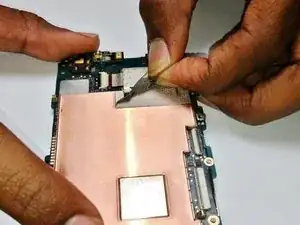 Снимите чёрную ленту, закрывающую фиксирующие язычки между платой и ЖК‑дисплеем.