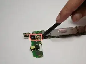 С помощью лопатки аккуратно подденьте переднюю камеру с материнской платы.